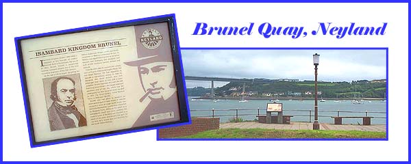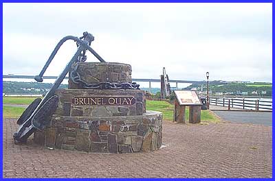 ..... and the toll bridge over the river is also a magnificent sight but there is much of interest on the quay itself. Various information boards abound and there are a number of monuments all pointing to the area's historical hreritage. Anchors and preserved wooden and chain structures give a little of the flavour of nineteenth century engineering practice. It seems fitting that a marvel of twentieth century engineering - the toll bridge - acts as a backdrop to Brunel's pioneering work. ![]() |