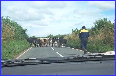 it was cattle that blocked the road, again seen through the car